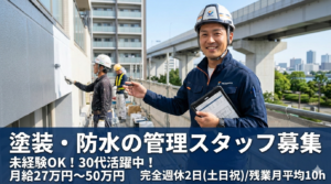 残業少なめ!塗装・防水の管理スタッフ/公共施設にも携われる安定企業|完全週休2日制