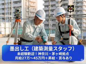 職種 墨出し工(建築測量スタッフ) 仕事内容 ビルやマンショ…