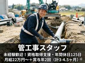 職種 建設現場の施工管理スタッフ|完全週休2日/資格取得支援…