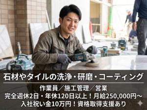 職種 石材・タイルの研磨作業員/施工管理/営業職|完全週休2…