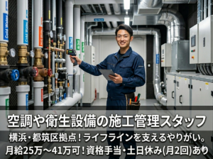 職種 空調や衛生設備の施工管理スタッフ 仕事内容 当社は横浜…