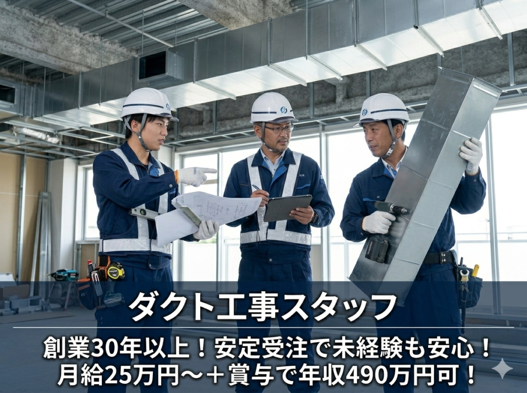 空調設備ダクト工事スタッフ/公共施設案件多数の安定企業/資格取得支援・独立支援制度あり […] 続きを読む… from 空調設備ダクト工事スタッフ/公共施設案件多数の安定企業/資格取得支援・独立支援制度あり