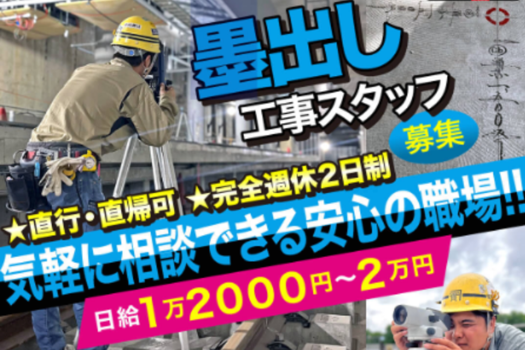 あなたにお任せするのは、建築現場で建物の位置や高さの基準となる線(墨)を引く仕事です。