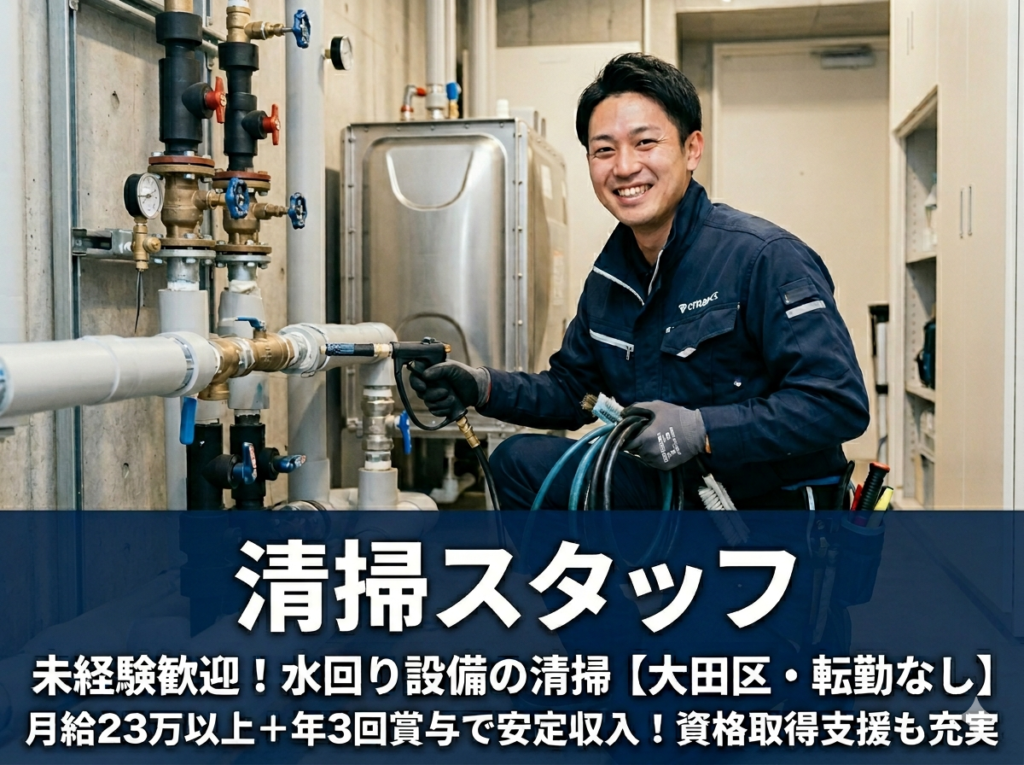 - ビル・マンションを中心とした水回り設備の清掃および関連作業を担当していただきます。
